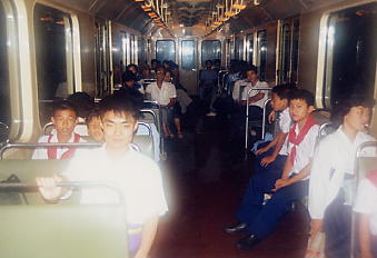 地下鉄の車内光景です。ちなみに乗る客が降りる客とほとんど同時に出口に殺到するので、地下鉄を降りる時びっくりした覚えがあります。