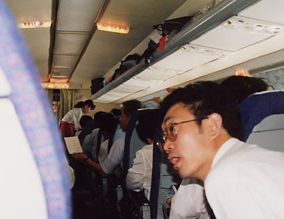 北朝鮮に向かう“朝鮮民航”機内。機体は旧ソ連のツポレフで、座席がやや狭い。びっくりしたのは冷房が効かず、飛行機に乗った直後は暑くて、上空に行くと涼しくなり、ピョンヤン到着が近づくとまた暑くなるという完全天然冷房飛行機であった。