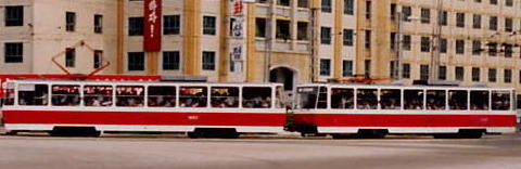 ピョンヤン駅前の光景。荷物を積んだリヤカーみたいなものは、荷物の宅配サービスのような仕事をしているとのことですが……(宮塚利雄氏著『北朝鮮観光』の情報による)