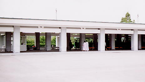 チェックポイントで見学予約を確認された団体は、チェックポイントから左手に伸びる回廊に、団体ごと整列します。上の写真は整列場所の回廊です。