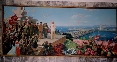西海閘門展望台にあった壁画。胸を張った金日成主席が素敵!!