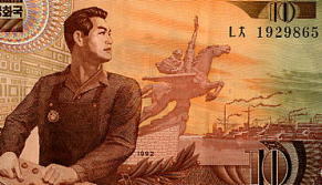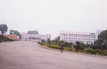 北朝鮮最大の製鉄所、降仙製鉄所の入り口。この製鉄所はお札(10ウォン札)にもデザインされている。(右の、煙を上げている工場です)
