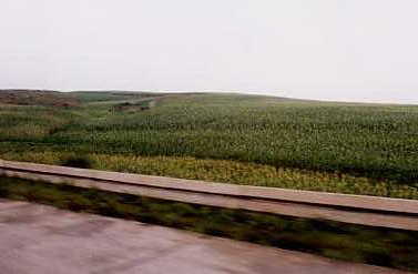 車窓からの光景。南浦市は、北朝鮮有数の大都市だそうですが、郊外にはごらんのようにトウモロコシ畑や水田が広がっています。