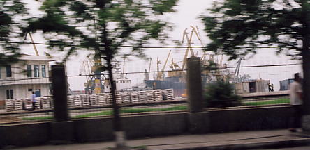 北朝鮮最大の貿易港、南浦港の光景を車窓から撮ってみました。車窓から見た印象は、普通の貿易港といった感じでした。