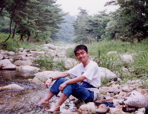 九月山は空気が美味しい、緑豊かなすてきなところです。写真は渓流に足を浸しながらくつろぐのりまきです。ちなみに秋にはマツタケが沢山採れるとか……