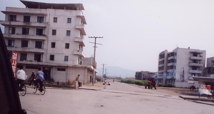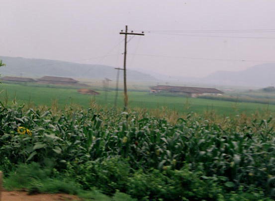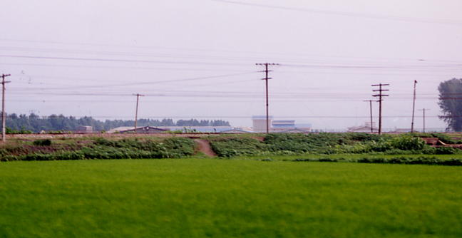 土手(実は線路)の向こうに見えるいくつかの建物は、温泉(信川温泉)の保養所だそうです。北朝鮮観光最大の欠点のひとつは、予定外の行動はほとんど不可能なこと。今回もこんなに近くなのに、予定になかったので温泉には入れませんでした!くやし〜い!!