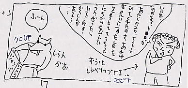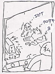 解説:『NORI AND TORO』に収録。87年作と推測される。本誌収録の“黄色い杖”事件をマンガ化したもの。黒崎家ではなくS家、女性でなくて男性というように若干の設定は異なっているが、インパクトはこのマンガの伝えるままである。