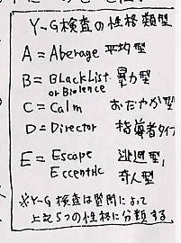 今:いわゆる矢田部ギルフォード検査ですね。確か、A・B・C・D・Eの5つの性格類型に分けたものでした。(図参照)