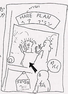 今:あれは正確にはいつだったか忘れましたが、たしか学生の時の話です。私が散髪をしようとして『ヘアプラン』(注3)に行ったのです。すると、その店内にはちょっとおかしい雰囲気が流れていました。ヘンだなと思って店内を見わたすとカリフラワーのような頭をした小男がちょこんとすわって金切り声でしゃべっていたのです。