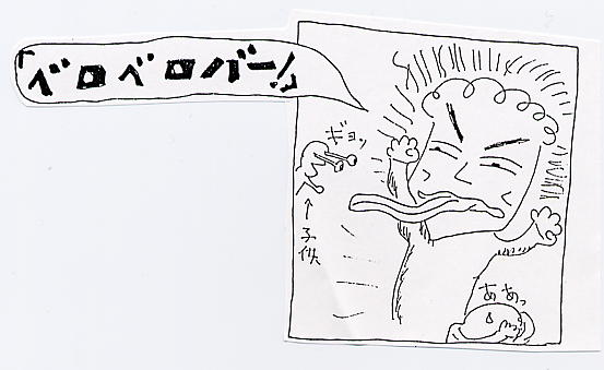 入口にはお母さんに連れられた幼児が座っていたのです。海老名は何を思ったのかツカツカツカとその幼児の前ににじりより、いきなり、顔面を崩壊させつつ、