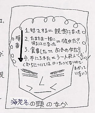 黒:話を戻すと、海老名の話の随所には、一緒に食事をしたり、遊んだり、そういうことを子供のように大喜びしていたのですが、実は、その彼女が海老名に好意を表現するような言動は一言も聞いたことはありませんでした。