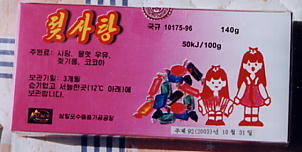 温井閣で売っていた北朝鮮製キャラメルの外箱。