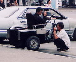 平壌駅前に停まっていた、オート三輪とも電動車椅子ともつかぬ謎の乗り物