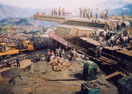 鉄道事績館展示物の目玉である、鉄道工事現場のジオラマの一部