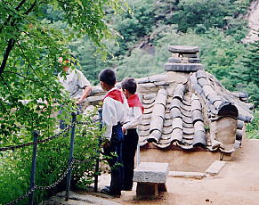ようやく庵まで到着しました……到着してみると私たち以外にも先客がいました……例の2人の少年です。どうやらとうに普徳庵まで先回りして、私たちのことを待っていたようです。ああ、やはりすごい健脚!!