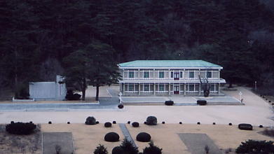 自室に戻り、夜中に懐中電灯の明かりが見えていた方を見てみます。するとそこには北朝鮮の金剛山本『金剛山の歴史と文化』に載っていた、金剛山革命事績館の建物がありました。どうも革命事績館の周辺に怪しい人物がいないかどうか、見回りをしていたようです。