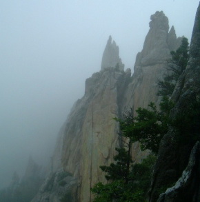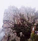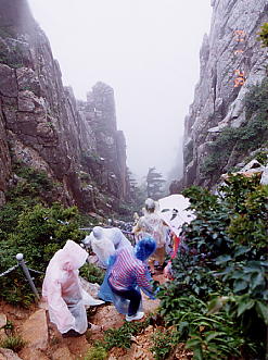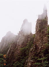 天仙台は、天から天女が降りて遊んだと言われる場所だそうです。360度、見わたす限りの絶景ということですが、残念ながら周囲をよく見わたすことは出来ませんでした。しかし。嵐の中の万物相は神秘的でありました。個人的感想ですが、九竜の滝コースよりも万物相コースの方が、よりグレードが高いような気がします。