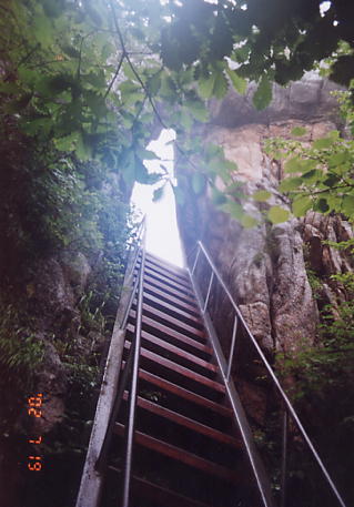 忘杖泉を過ぎると、『ハヌルムン』(天への門)という、人ひとりがようやく通ることができるくらいの天然のトンネルをくぐります。ハヌルムンまではなんとか持参の一眼レフが使えていたのですが、ここから先はレンズがひどく曇ってしまい、しばらく一眼レフが使えない状態になってしまいました。ここから先、この日の夜までデジタルカメラが孤軍奮闘してくれました(^o^)。
