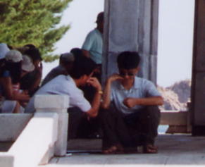 ところで、海金剛の北朝鮮の監視員さんの中に、実に味のある男性がいました。髪が短くて黒いサングラスをかけ、洋服の着かたもすこし崩れた感じで、なんとなくアウトサイダーの匂いがします。雰囲気としては長渕剛に似ています。この北朝鮮の長渕は、金剛山観光客の監視などろくろく行わず、物陰でウンコ座りしながら、韓国人の観光客たちとずーっとなにやら話し込んでいました(笑)。