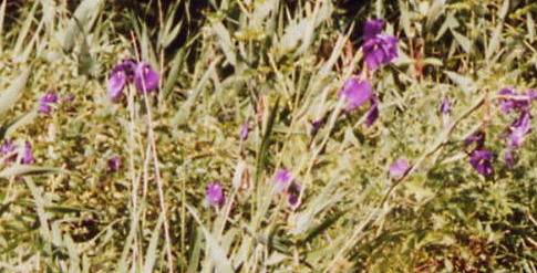 交替と引継ぎが終わると、検問所が開きます。前回は気づかなかったのですが、検問を過ぎてからも道から外れた奧の方には家がありました。晴れた空のもとで多くの洗濯物を干していましたので、誰か生活している人がいるのだと思います。感じとして普通の民家で兵舎のようではありません。家族連れの兵士の家なのでしょうか??そして検問の先は、道はその昔田んぼであったらしい場所を通過します。あぜ道は残っていますが、田んぼだった面影はなく、感じとしては水浸しになって葦などが繁茂してしまった休耕田といった感じです。そこにはところどころに紫色をした美しい花が咲いていました。花の感じからいってノハナショウブか、かきつばたの仲間みたいでした。