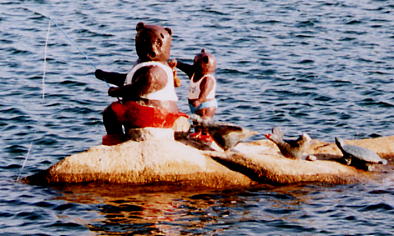 続いて三日浦に現れた集団……釣りをしているお父さんクマのTシャツには、