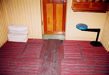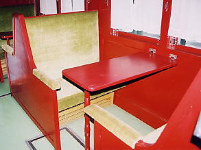 車両の二等室内部です。右手前の白いシーツのかけられた座席は、かつて金日成氏が座った座席とのことです。