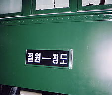 朝鮮文字でチョルオンーチャンド(鉄原ー昌道)と書かれた行先案内板。