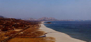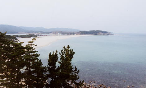 目の前に広がる白砂の海水浴場で1948年の夏、金正日氏が泳いだそうな。