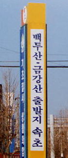 束草は白頭山・金剛山のゲートウエイであると書かれた、束草港の看板