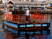 水路沿いの道を進むこと約5分、目の前に四角い形の渡し舟が見えてきました、ケッペです。のりまき・ふとまきはさっそく乗ってみます。ケッペには船頭さんのような男性が一人乗っていまして、また、他の乗客のおばさん連中も慣れたもので、みんなしてなんだか引っぱり始めました。なんだろうと思って見てみると、水路の対岸同士を結んだワイヤーがケッペの中心を通っていまして、そのワイヤーを鉤のついた鉄棒に引っ掛けて、人の力で引っ張ることにより前進する仕組みになっていました。原理的にはケーブルカーに近い感じです。さて、のりまき・ふともきもケッペ引きを手伝ってみました。意外と簡単なものです。対岸に着くと料金所がありました。片道150ウォンでした。日本円で15円たらず……動力は私たちの腕なのですが、ま、安いですね〜〜