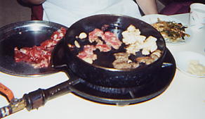(注):トンシムとはひれ肉のこと。ちなみにお店の名前は『大都食堂』。電話番号は2292−9772:2293−9095です。(2001年12月時点)。場所は確かに少々わかりにくいと思います。私たちが参考にした、誰も歩かなかった韓国の旅(昭文社):によれば、韓国のお店は税金対策で結構屋号・電話番号の変更が頻繁だといいます。皆さん、行かれるならば少々覚悟して行ってみてくださいな(笑)。
