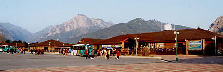 雨が降った昨日と違い、とても良い天気でした。バスの中では昨晩と同じくミス・イーが快調に解説を続けています。本当に朝も早くから元気の良い人です(笑)。そして昨晩は暗い中でしたが、今日は朝の明るい光のもと、金剛山への道のりをじっくり眺めることができました。
