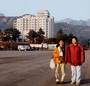 朝8時過ぎ、ホテル海金剛のフロントでミネラルウオーターとまたまた北朝鮮製の金剛山ガイドブック(今度はポケット版)を購入。そしてホテル海金剛を写真撮影しました。
