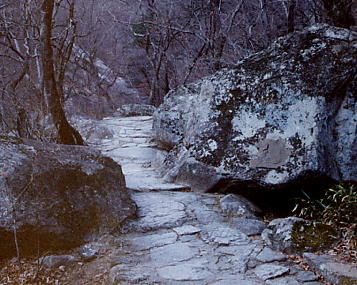 そんな話をのりまきとした後に、山道を歩きながら、ふとまきがミス・キムに「今まで日本に来たことありますか?」と話し掛けてみました。すると「1回あります」と言います。「日本のどこへ行ったのですか?」と聞いてみると、「前に福岡に行ったことがあります」。とのことです。「日本語はどこで習ったのですか?」と尋ねると、ミス・キムは「高校で習いました。高校を出てからここ数年全く日本語を使っていないので、大変ですよ」。と言って笑います。また、「日本人は金剛山へ良く来るのですか?」と聞いてみると、「いいえ、あまり来ません。金剛山は韓国・朝鮮の人は一度は行ってみたい山ですが、日本の人はあまり来ません」。ということです。「外国の人は来ないのですね」。とのりまきが聞くと「欧米系の人が団体で来ることはあります」。とのこと、どうやら金剛山は今のところ日本人よりも欧米人の観光客が多いようです。