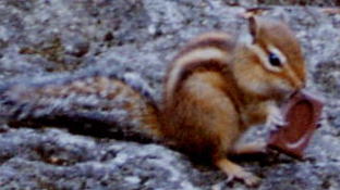 そしてもう少し行くと、道端に突然リスが現れました。リスはぴょこぴょこ跳ねるように辺りを動き回ります。ちょうどそばには北朝鮮の監視員のみなさんもいたのですが、みんなで時ならぬリス観察会になってしまいました(^o^)。そしてミス・イーが持っていたチョコレートをひとつ、リスに投げてみると、リスはすばやくチョコレートを貰い受け、やがて藪の中に消えていきました。