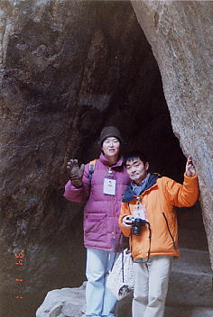 「これって、ディズニーランドがゴミひとつ落ちていない、きれいなところだというのと同じような気がする……」。ふとまきはそんなことを話します。「自然がとってもきれいなのは分かるけれども、なんだかとっても“不自然な”作られた感じがする……」。確かに、あちこちにいる監視員やきれいにされた登山道、親切だとはいえ私たちの後をしっかり歩いている現代社員、岩に彫リ込まれた政治スローガン……素晴らしい大自然を純粋に楽しむには、あまりにも多くの“余計なもの”が見えてしまいます。考えてみたら金剛山観光そのものが、純粋な観光以外に感じてしまうことが多いような気がします。多分韓国から北朝鮮に直接入るという特殊な状況が、感じてしまう不思議や不自然さを増やしているのでしょう。