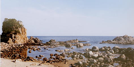 以前のりまきは、海金剛地区にウランが埋蔵されているという噂を耳にしたことがありました。ものものしい防御線や厳しい写真撮影禁止は、単に軍事基地があるばかりではなく、ひょっとしたらそんなことも関係しているのかもしれません。ところで、これも日本に帰ってから気づいたことなのですが、北朝鮮のガイドブック等でよく、海金剛の写真として紹介されている“海金剛門”の写真は、角度から見て問題の軍事基地から撮影した写真のようです。