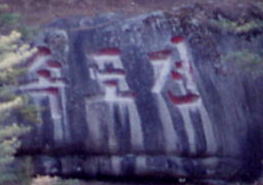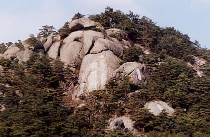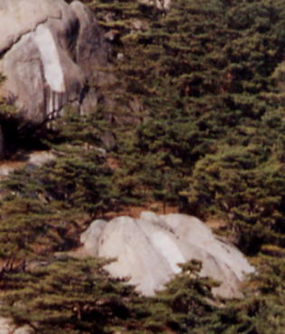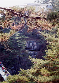 金正淑の大文字が刻まれている岩の右の方に妙なものが見えます。