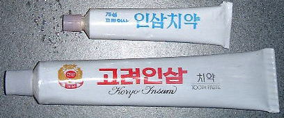 空港で購入した歯磨き粉。朝鮮人参入りだそうだ。ともに新義州の工場で作られたもののようです。