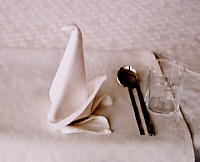 朝食時のナフキン。毎食違った折方で私たちを向かえてくれた。食事だけでない真心のおもてなし。