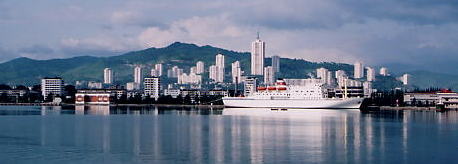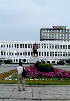 まずは元山港へ。金日成が本を片手に持った銅像を仰ぎ、万景峰号を見たり写真を撮ったりする。ここの銅像がかなり地味(汚れて?)なので、というのか、平壌にある銅像があまりにきれいだったので、あの平壌の銅像は磨いているんだろうと確信する(いつ?どうやって???)。Hさんに聞いてみるとあたりまえのように