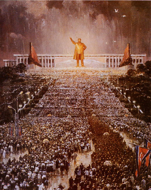 金日成主席死亡直後、25メートルの高さの金日成像があるピョンヤン市万寿台の丘に駆け付けたピョンヤン市民を描いたもの。のりまきは正直この絵は傑作だと思います。