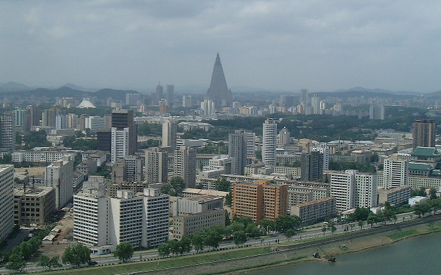 ピョンヤンの街にその姿を晒す、建設放棄された105階建ての柳京ホテル。